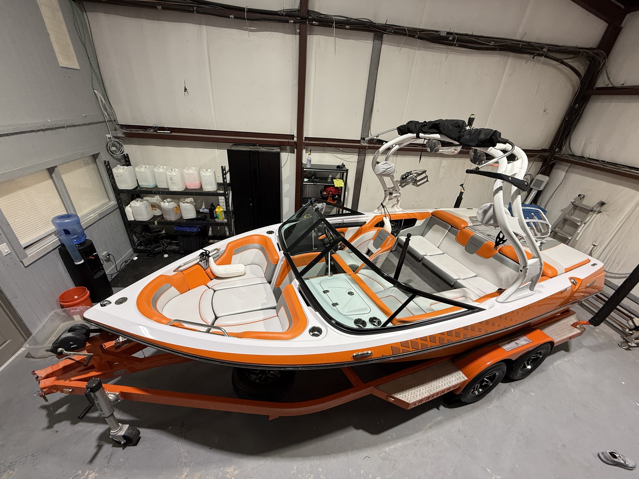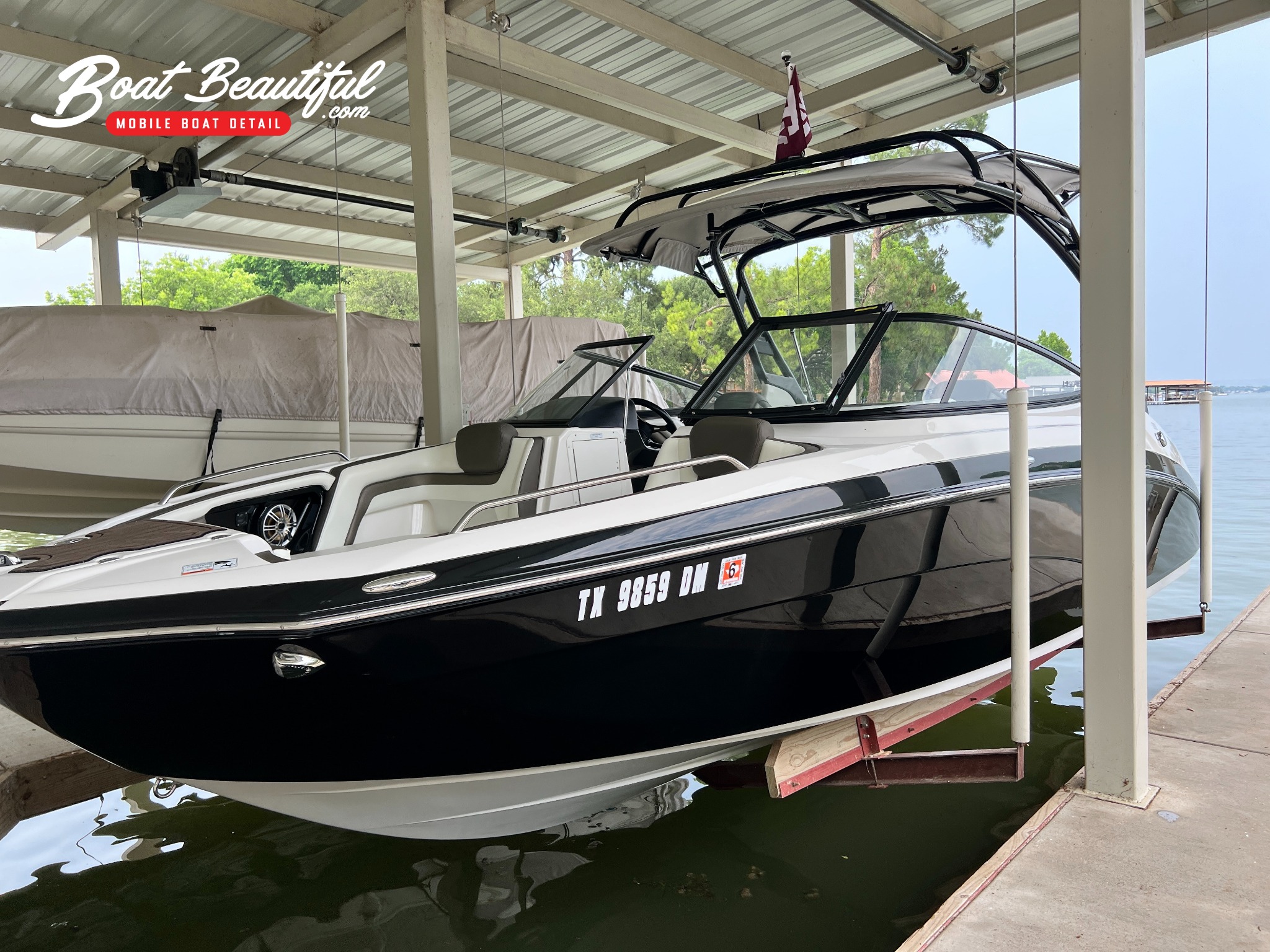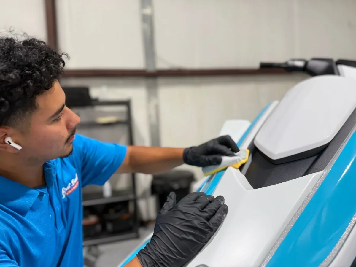 The finishing touch involves applying a ceramic coating to your JetSki's vinyl surfaces, enhancing their longevity and resistance to wear and tear.